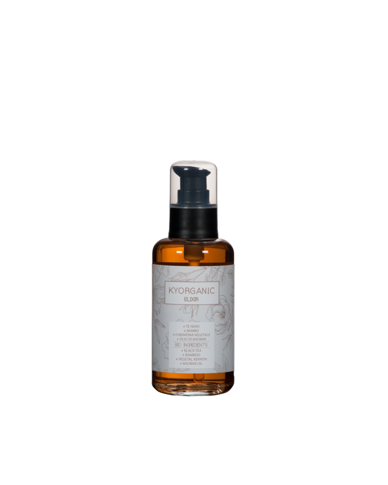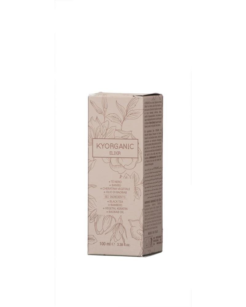 KYORGANIC Elixir με ενεργά βιολογικά συστατικά όπως Μαύρο Τσάι, Bamboo, φυτικό έλαιο Baobab και φυτική κερατίνη. Προστατεύει τα μαλλιά από φυσική και τεχνική ταλαιπωρία, ενυδατώνει, θρέφει, εμποδίζει τη δημιουργία ψαλίδας , δίνει ζωντάνια και λάμψη στα θαμπά μαλλιά κάνοντας τα μεταξένια χωρίς να τα βαραίνει.