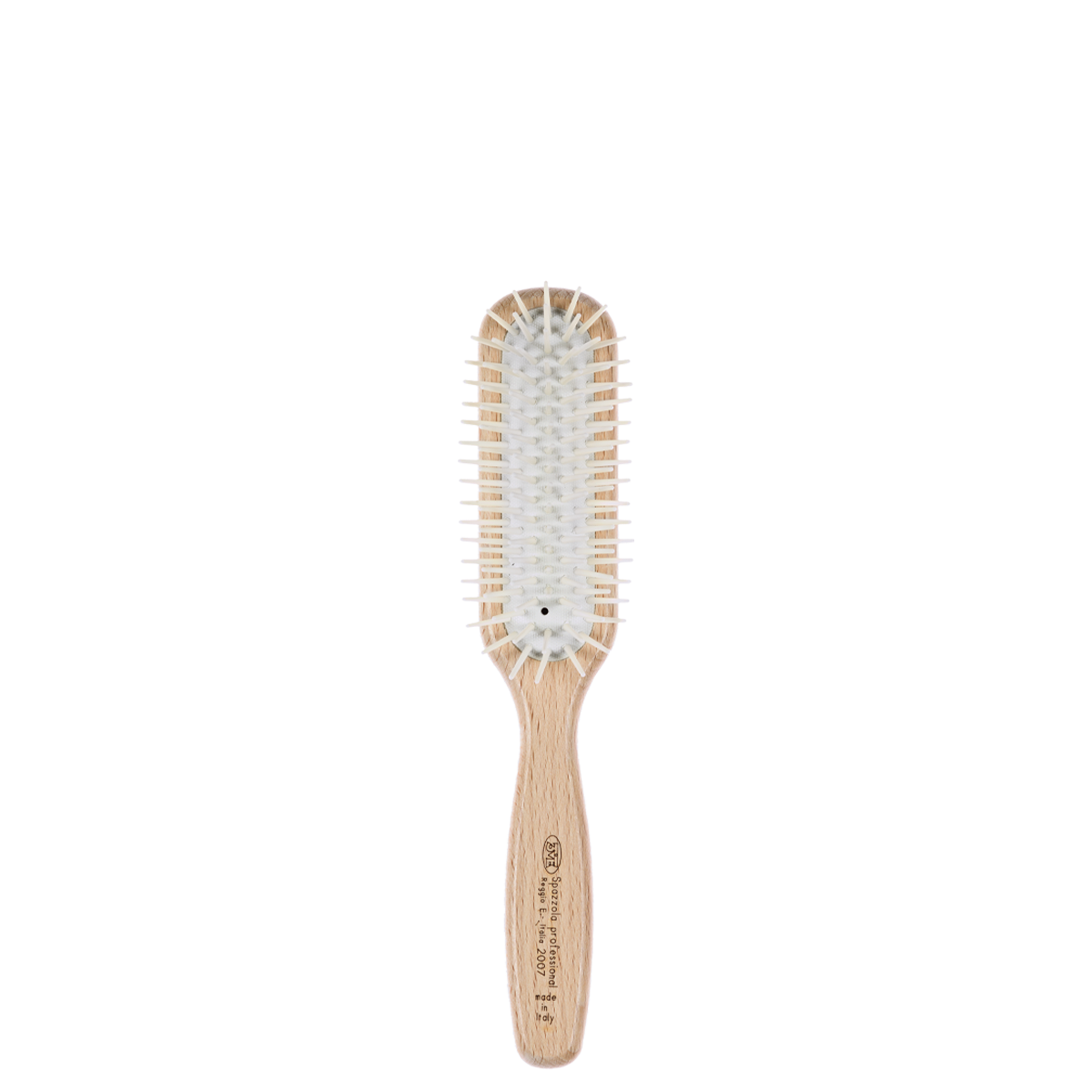 Βούρτσα μακρόστενη με βάση καουτσούκ “pneumatic” και ανθεκτικά και εύκαμπτα δοντάκια. Μια σειρά που, στην απλότητά της, αντανακλά και εκφράζει την ουσία, την καθαρότητα και τη φυσικότητα του ξύλου οξιάς